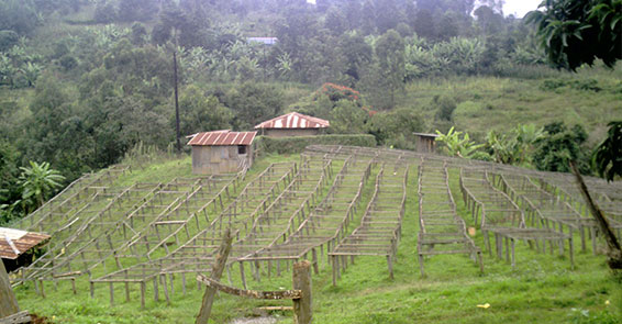 Kenya'da iki hasat mevsimi bulunmaktadır. Ana hasat, Nisan ile Kasım ayları arasında (toplam hasatın % 60'ı), ikinci hasat Aralık ile Temmuz ayları arasında gerçekleşir (toplam hasatın % 40'ı). Yarısı küçük işletmelerden oluşan kahve üreticilerinin her biri ikişer-üçer hektarlık alana sahiptir. Bu küçük üreticiler kooperatiflere ait fabrikalarda bir araya gelir. Her fabrika farklı çaptaki küçük üreticiden kahve alır. İhracatçılar, işlenen kahveleri direkt olarak kooperatiflerden veya tarlalardan değil de açık arttırma yoluyla satın alırlar. Böylece üretici kahvelerinin tarımsal kalitesini yükseltmesi için ihracatçı tarafından teşvik edilmiş olur.